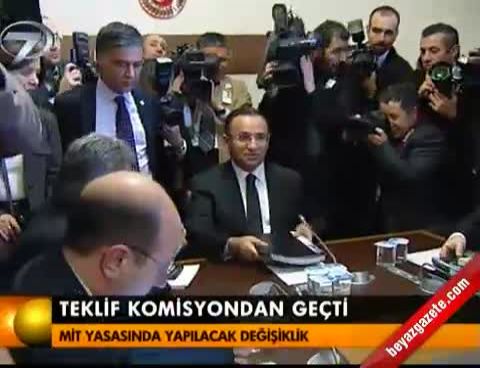 MİT mensupları veya özel bir görevi ifa etmek üzere Başbakan tarafından görevlendirilen kişilerin, özel yetkili ağır ceza mahkemeleri kapsamındaki suçlarla ilgili soruşturmalarının Başbakanın iznine bağlanmasını öngören kanun teklifi, TBMM Adalet Komisyonunda kabul edildi.