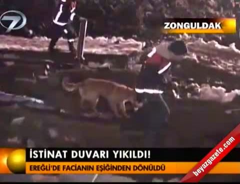 Kdz. Ereğli'de saat 22.30 sularında Yalı Caddesi üzerinde tarihi istinat duvarının çökmesi cadde üzerindeki bir kuaför salonun güvenlik kamerasına saniye saniye yansıdı. Yıkım anında bazı vatandaşların caddeden geçtikleri halde, saniye saniye meydana gelen göçüğü göremedikleri ve büyük bir tehlike atlattıkları görülüyor