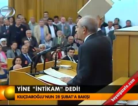 Parti Meclisi toplantısının olduğu gün 28 Şubat ile ilgili göz altıların başladığını söyleyen Kılıçdaroğlu, şöyle devam etti: “Bir gazeteci bu konudaki düşüncemi sordu. Söylediğim cevabı okuyorum. ‘Eğer bir yerde hukuksuzluk yoksa baskı yoksa insan haklarının gerektirdiği şekilde herkesin yargılanmasına ses çıkarmayız. Adil olmak koşuluyla, herkes savunmasını yapabilir.’ Yani demokrasi varsa, hukukun üstünlüğü varsa, yargı bağımsızsa bu ülkede kim ne suç işlediyse, hakkında fezleke düzenlendiyse, gidecek yargıda hesabını verecektir. Söylediğim budur. Ama ben bunu 10 gün önce de 20 gün önce de 200 gün önce de söylüyorum. Bu ülkede hukukun üstünlüğüne inanacağız, yargı gerçekten adaletli davranacak. Arkasından şunu söylüyorum, ‘bugünkü Türkiye’de ben adaletin olmadığına inanıyorum, adalet yok. Kişi savunma hakkını kulandı diye hapse mahkûm oldu bizim ülkemizde’… ‘Adaleti intikam duygusu ile arayamazsınız’ diyorum. Yine söylüyorum, adaleti intikam duygusu ile kimse arayamaz, aramamalıdır. Böyle bir arayış içine girenlerin de adalet duygusu yoktur. Her yerde söylüyorum. Ve devam ediyorum, ‘adalet yüce bir kavramdır. Verilen kararın toplum vicdanında kabul edilmesi gerekir. Eğer bir karar toplum vicdanında kabul edilmiyorsa o adalet değildir. Adaletin olmadığı yerde sağlıklı çalışan bir yargı da olmaz.’ Yine devam ediyorum: ‘sıkıyönetim mahkemeleri 12 Eylül dönemi ve o dönemin otoriter rejiminin yargı ayağıdır. Özel yetkili mahkemeler de bugün AKP hükümetinin yargı ayağıdır. Şimdi bu sözlerimde ne eksiklik, yanlışlık var? Bu söylediklerimden gazeteciler, ‘adaleti intikam duygusu ile arayamazsınız’ı çıkarmışlar. Bu cümlede ne eksik var. Bunun kullanarak CHP ve beni eleştiriyorlar. Senin CHP Genel Başkanı’na demokrasi dersi vermen haddin değildir."