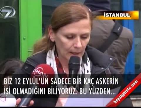Taksim Meydanı’ndan Tepebaşı’na yürüyen grup TÜSİAD binası önüne postal bıraktı. ‘Hepimiz Davacıyız-Evren Yetmez İnsiyatifi’ üyesi yaklaşık 100 kişilik grup, 12 Eylül darbesindeki etkilerinden dolayı TÜSİAD’ı protesto etmek için Taksim Meydanı’nda toplandı. ‘Kenan Evren yetmez darbenin tüm sorumluları yargılansın’ yazılı pankart açan grup İstiklal Caddesi üzerinden yürüyüşe geçti. Grup yürüyüş boyunca ‘Katil Evren’ , ‘Darbelere karşı omuz omuza’ , ‘Darbeci TÜSİAD yargılansın’ şeklinde sloganlar attı. Tepebaşı’nda bulunan TÜSİAD binası önün gelen grup bir süre daha slogan attı. Polisin geniş güvenlik önlemi aldığı eylemde grup adına basın açıklamasını sanatçı Zeynep Tanbay yaptı. 12 Eylül darbesinin sorumlusu olarak gösterdiği Kenan Evren ve Tahsin Şahinkaya’nın 4 Nisan’da mahkeme karşısına çıkacağını hatırlatan Tanbay, aradan 30 yıl geçmesine rağmen yüreklerinin yumuşamadığını söyledi.