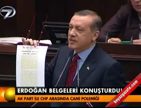 Başbakan Recep Tayyip Erdoğan, CHP’nin iktidar olduğu dönemlerde camilerin ahır olarak kullanıldığını kabul etmeyen CHP Genel Başkanı Kemal Kılıçdaroğlu’nu, camilerin başka amaçlarla kullanıldığını gösteren ‘belgelerle’ yalanladı.