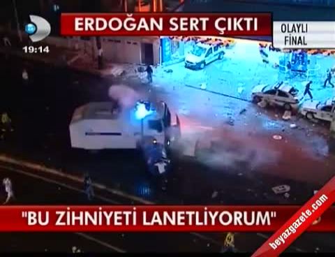 14 Mayıs 2012 Pazartesi günü yayınlandı Başbakan Recep Tayyip Erdoğan, ''Maçtan sonra her tarafı yakıp yıkmak, bütün polis araçlarını, her şeyi devirmek, bu nedir ya- Bunu biz terörde görüyoruz. Ama bu tribünlere terörü hakim kılmak isteyen zihniyeti de lanetliyorum'' dedi.