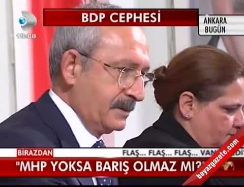 BDP Genel Başkanı Selahattin Demirtaş, Başbakan Recep Tayyip Erdoğan ve CHP Genel Başkanı Kılıçdaroğlu’nun dünkü görüşmesi sonrasında ‘barış’ gibi hayati bir konuyu MHP’nin iradesine ipoteklemenin yanlış olduğunu belirterek, “MHP olmazsa bu ülkeye barış gelmeyecek mi? MHP evet demeyene kadar akan kan durmayacak mı?” dedi.
