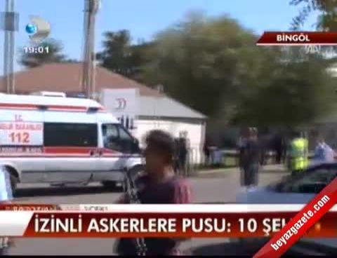 Bingöl’de haftasonu görevden dönen Çevik Kuvvet ekibine bombalı saldırıda 8 polisi şehit eden PKK’lı teröristler bu olaydan iki gün sonra bugün de askeri konvoya uzun namlulu silahlar ve roketatarlarla saldırdı. Elazığ’dan, Muş ve Van’a giden silahsız ve sivil kıyafetli 200 askerin bulunduğu konvoydaki otobüslerden biri roket isabet etmesi sonucu alev aldı, saldırıda 9 asker şehit oldu, 6’sı ağır 70 asker de yaralandı.