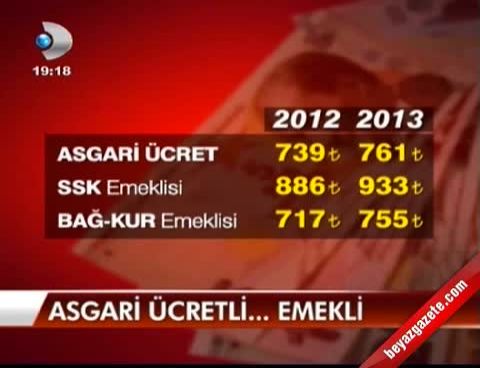 2013 yılında, asgari ücret ile SSK ve devredilen Bağ-Kur emekli aylıklarına öngörülen artış oranları açıklandı.