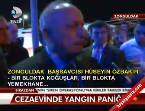 Beycuma Cezaevi'ndeki yangın söndürme çalışmalarıyla ilgili bilgi veren Zonguldak Cumhuriyet Başsavcısı Hüseyin Özbakır, 4 bloklu cezaevi binasının bir bloğunun çatısının tamamen yandığını söyledi.