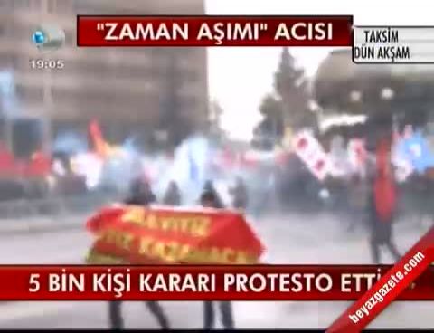 'Sivas Davası'nın zaman aşımı nedeniyle düşmesi, İstanbul'da protesto edildi. Çeşitli siyasi parti ve sivil toplum kuruluşlarının temsilcilerinin de aralarında bulunduğu yaklaşık 3 bin kişi, Taksim Meydanı'ndan bir araya geldi. Kalabalık, buradan hareketle Galatasaray Meydanı'na doğru yürüyüşe geçti. Hükümet aleyhine sloganlar atan grup, daha sonra Galatasaray Meydanı'nda geldi. Burada grup adına açıklama yapan Halkevleri sözcüsü, davanın zaman aşımına uğrayarak düşmesine tepki gösterdi ve bu durumdansiyasileri sorumlu tuttu. Kalabalık, yapılan açıklamanın ardından yeniden Taksim Meydanı'na doğru yürüyüşe geçti. Bu sırada gruptan ayrılan bazı şahıslar, İstiklal Caddesi üzerinde bulunan bir banka şubesini taşlamaya başladı. Saldırganlara, gruptaki diğer eylemciler tepki gösterdi