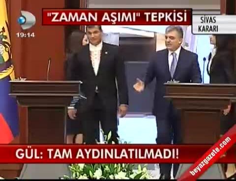 Cumhurbaşkanı Gül, Ekvador Cumhurbaşkanı Rafael Correa Delgado ile Çankaya Köşkü'nde düzenledikleri ortak basın toplantısında, gündeme ilişkin soruları yanıtladı. Sivas olaylarıyla ilgili davada 6 kişinin dosyasının zaman aşımına uğramasının ardından oluşan tepkilere ilişkin değerlendirmesinin sorulması üzerine Gül, Yargıtay Başkanı Nazım Kaynak'ın davayla ilgili olarak yargılama sürecinin bitmediğini belirttiğini hatırlattı. Gül, ''Dava devam ediyor demektir. Bu olay yakın siyasi tarihimizin en acı ve en utanılacak olaylarından birisidir. Aslında bunun bütün veçheleriyle ortaya çıkartılması lazım. Bu olay tam aydınlatılmamıştır. Bu olayın tam aydınlatılması, nasıl oldu, kimler, nedir... Tam aydınlatılması gerektiği kanaatindeyim'' diye konuştu.