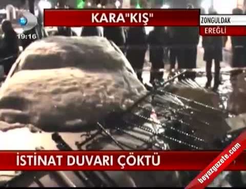 Kdz. Ereğli'de saat 22.30 sularında Yalı Caddesi üzerinde tarihi istinat duvarının çökmesi cadde üzerindeki bir kuaför salonun güvenlik kamerasına saniye saniye yansıdı. Yıkım anında bazı vatandaşların caddeden geçtikleri halde, saniye saniye meydana gelen göçüğü göremedikleri ve büyük bir tehlike atlattıkları görülüyor