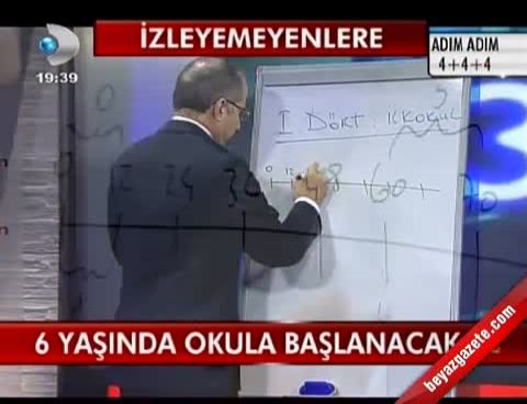 Birand'ın sorularını yanıtlayan Bakan Dinçer, konuyu daha iyi anlatabilmek için tıpkı bir öğretmen gibi tahtaya çıktı, 4+4+4 eğitim sistemini anlattı. Soru cevap yöntemini kullanarak 4+4+4 eğitim sistemini anlatmaya çalışan Bakan Dinçer, yeni sistemle birlikte doğacak öğretmen açığının da kapanacağını söyledi.