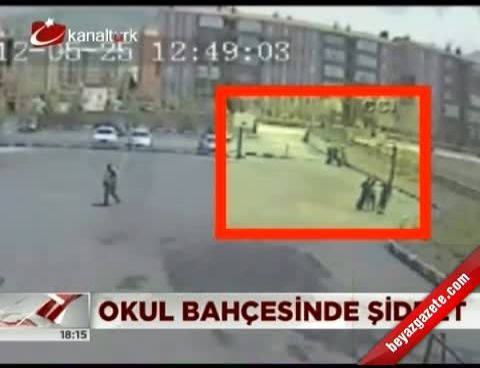 Okul bahçesinde meydana gelen bıçaklı saldırı olayı güvenlik kamerası görüntülerine yansıdı.