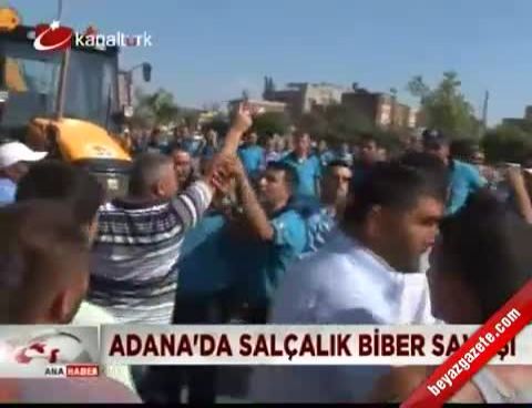 Adana'da salçalık biber satıcıları ile zabıta ekipleri taş ve sopalarla birbirine girdi. Olayda bir çocuk ile zabıta memuru yaralandı.