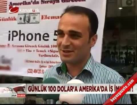 Güleç, dükkanının önüne astığı, "Amerika’da günlük 100 dolar karşılığında iPhone 5 sırasına girecek eleman aranıyor" yazılı afişle hem Amerika rüyasını gerçekleştirmek isteyenlere hem de iş sahibi olmak isteyenlere bir taşla iki kuş tabirinin olanaklarını sunduğunu belirtti.