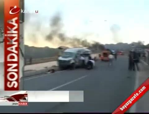 Patlamada servis minibüsü ile zırhlı araç alev alıp yanmaya başladı. Şiddetli patlama kent merkezinden de duyulurken, yükselen dumanlarda uzaklardan görüldü.