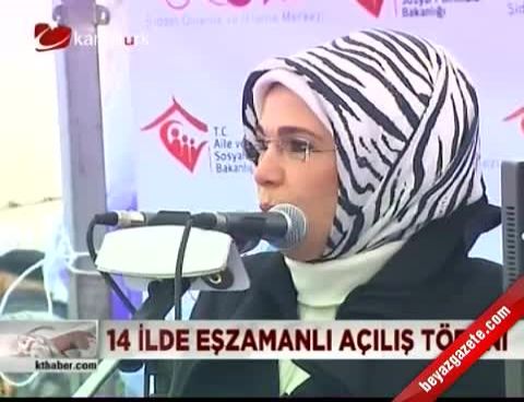 Erdoğan, törende yaptığı konuşmada, Aile ve Sosyal Politikalar Bakanlığı bünyesinde Kadının Statüsü Genel Müdürlüğü'nün özverili çalışmalarıyla hayata geçirilen merkezlerin ülkeye ve millete hayırlı olmasını diledi. Erdoğan, aileyi kutsal sayan ve toplumun merkezine yerleştiren bir medeniyete mensup olunduğunu söyleyerek, "Bizim için aile kurumu sevginin, saygının, anlayışın, hoşgörünün ve dayanışmanın sembolüdür. Bu özellikleriyle aile, bizim yuvamızdır, korunağımızdır, sığınağımızdır" dedi.