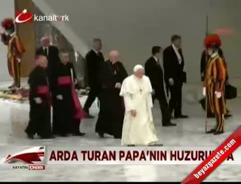 Atletico Madrid takımından arkadaşları ile Papa 16.Benedikt'i ziyaret eden milli futbolcu Arda Turan, Papa'nın halka hitabını da dinledi.