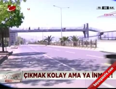 Tekerlikli sandalyeleri ile üst geçitten karşıya geçmek isteyen engelliler, iniş sırasında karşılarına merdiven çıkınca ne yapacağını şaşırıyor. Üst geçitte bir terslik olduğuna dikkat çeken vatandaşlar, olayı ‘fırka gibi’ diye tanımlıyor.