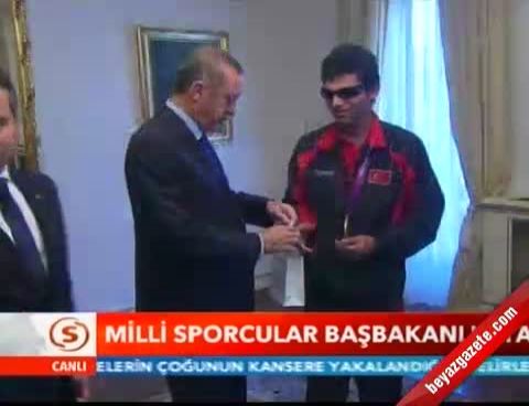 Başbakanlık resmi konutunda, basına kapalı gerçekleşen görüşme yaklaşık bir saat sürdü. Gençlik ve Spor Bakanı Suat Kılıç'ın da hazır bulunduğu kabulde sporcular, Başbakan Erdoğan'a, imzaladıkları milli formayı ve görme engellilerin kullandığı zilli top hediye ettiler.
