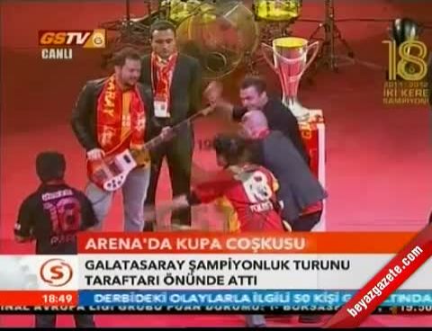 Tüm futbolcular sahaya geldikten sonra Başkan Ünal Aysal, şampiyonluk kupasını takım kaptanları Ayhan Akman, Sabri Sarıoğlu ve Tomas Ujfalusi'ye verdi. 18. şampiyonluğa ulaşan Galatasaray'da futbolcular, marşlar eşliğinde kupa coşkusunu doyasıya yaşadı.