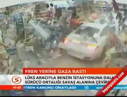 Porsche'nin markete girmeden çarptığı otomobilin sürücüsü ise, “Süratini bilemeyeceğim ama, buradan geldi direk içeri girdi. Bende bir şey yok Allah’a şükür. Pompacıya çarptı işte. Şoka girmişti çocuk.” dedi.