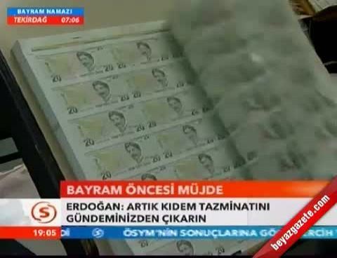 Başbakan Tayyip Erdoğan'dan bayram öncesinde çalışanlara "kıdem tazminatı" müjdesi geldi.