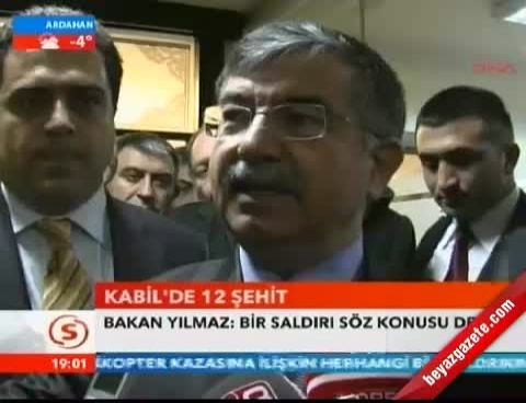 Sivas temaslarının ikinci gününde AK Parti Sivas İl Başkanlığı'nın düzenlediği Siyaset Akademisi'ne katılan Bakan Yılmaz, çıkışta gazetecilerin sorularını yanıtladı. Bakan Yılmaz, Afganistan'da 12 Türk askerinin şehit olmasıyla ilgili, 'Afganistan'a hem kaza kırım ekibimiz hem de savcımız gitti. Dolayısıyla askeri bir uçakla Genelkurmay Başkanlığımız tarafından gönderildi. Bu kazada kırım heyeti teknik bir raporu araştıracak ve getirecek. Dolayısıyla o raporun sonucunu bekleyelim ve rapor alındıktansonra da milletimize gerçek neyse açıklanacaktır. Bu arada hem Amerikan Savunma Bakanı Leon Panetta hem Yunanistan Savunma Bakanı hem de Afganistan Savunma Bakanı arayarak başsağlığı dileklerini iletti. Ben tekrar şehitlerimize Allah'tan rahmeti ailelerine başsağlığı diliyorum. Allah bir daha böyle bir olayı, acıyı ne bize nede başka bir millete yaşatmasın diyorum ' ifadelerini kullandı