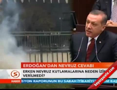 Başbakan Erdoğan, Nevruz kutlamalarına izin verilmemesini eleştiren köşe yazarlarını ve yaşanan provakasyonlar nedeniyle BDP'ye sert çıktı. Yasak kararını eleştiren köşe yazarlarına seslenen Erdoğan, 'Beyefendiler tabiî ki köşelerinizde rahatsınız. Çünkü size dağdan davet geliyor, adadan davet geliyor. Bundan dolayı mı bu yazıları yazıyorsunuz? 'diye sordu.