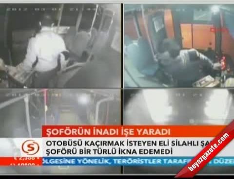 Tekirdağ'da belediye otobüsünü kaçırmak isteyen silahlı kişi, şoförün direnmesi sonucu kaçtı. Kar maskeli zanlının, şoförle diyaloğu otobüste bulunan güvenlik kameralarına yansıdı.