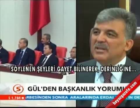 Cumhurbaşkanı Gül, başkanlık sistemiyle ilgili Şanlıurfa ziyaretinde değerlendirmede bulundu. Başkanlık sisteminin hep tartışıldığını, kendisinin de bu konudaki fikirlerinin bilindiğini söyleyen Gül, "Hemen bir gündem çıkıyor, hadi herkes tekrar aynı şeyleri konuşsun. Bilinen şeyler. Tüm bu tartışılan konuların bilinerek tartışılması çok önemlidir. Enine boyuna bilinmesi, ciddi analizlerin yapılması ciddi bilgilerin ortaya konması çok önemlidir. Herkesin bir şey söylemesi değil ne söyleniyorsa söylenen şeylerin gayet bilinerek derinliğine analizlerin yapılarak konuşması çok daha faydalı olur. "