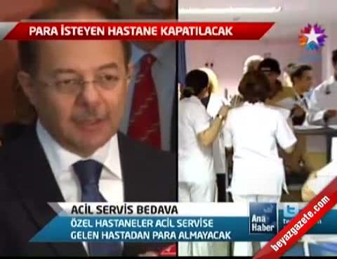 Acil servise başvuran hastalara, yoğun bakım hizmeti dahil gerekli ilk müdahalenin yapılması, gerekiyorsa hastanın yatışı yapılarak tedavisinin ve eğer gelişirse komplikasyonların tedavisinin tamamlanmasından özel hastane sorumlu olacak. Aynı yılda 3 kez ve daha fazla acile başvuran bir hastadan ilave ücret talebi tespit edilirse hastanenin ruhsatı geri alınabilecek