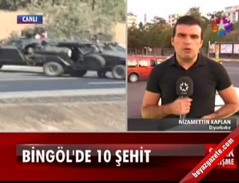 Bingöl’de haftasonu görevden dönen Çevik Kuvvet ekibine bombalı saldırıda 8 polisi şehit eden PKK’lı teröristler bu olaydan iki gün sonra bugün de askeri konvoya uzun namlulu silahlar ve roketatarlarla saldırdı. Elazığ’dan, Muş ve Van’a giden silahsız ve sivil kıyafetli 200 askerin bulunduğu konvoydaki otobüslerden biri roket isabet etmesi sonucu alev aldı, saldırıda 9 asker şehit oldu, 6’sı ağır 70 asker de yaralandı.