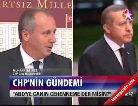 İnce, Meclis'te düzenlediği basın toplantısında, Başbakan Recep Tayyip Erdoğan'ın, kendisini hedef alarak, ''Esad'a canın cehenneme' diyorsun, ABD'ye de diyebilir misin-'' dediğini söyledi.