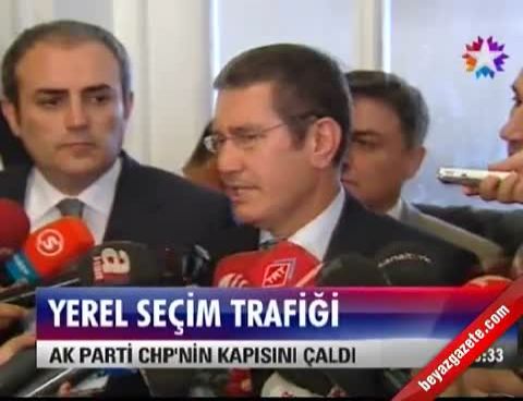 CHP yetkilileri görüşlerini söyledi. CHP bizim önerimizi ki önerimiz herhangi bir tarih içermiyor, bizim teklifimiz yerel seçimin 2013 'ün sonbaharında makul olan bir tarihte yapılması yönünde oldu, onlar da bu teklifi kendi kurullarında görüşeceklerini söylediler. Kendileri bize bir tarih vermediler, bizim önerimizi görüşeceklerini söylediler. Büyükşehir yasasıyla ilgili düşüncelerini bizimle paylaştılar. Seçim barajını da toplantıda görüştük.