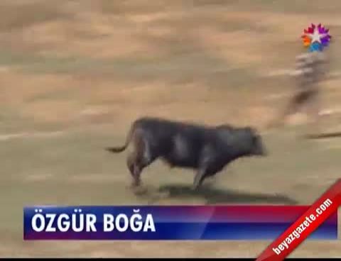 Gözleri çözülen boğa bataklıktan çıkıp yan tarafta bulunan su birikintisine girdi. Su birikintisinde hızla koşan boğa daha sonra karaya çıktı. Önüne çıkan vatandaşlardan da kurtulan boğa, ormanlık alana girerek gözlerden kayboldu. Ormanlık alana giren boğayı 3 saat boyunca kovalayan vatandaşların arama çalışmaları devam ediyor .