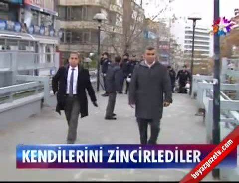 Ankara Kızılay’da, kendilerini üst geçidin demir korkuluklarına zincirleyen Sosyalist Demokrasi Partisi (SDP) üyesi 5 kişi gözaltına alındı.