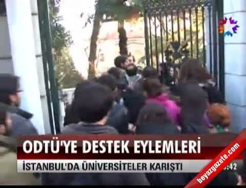 Ankara’da bulunan ODTÜ Kampüsü’nde 20 Aralık tarihinde Türkiye’nin uzaya gönderdiği ilk uydusu Göktürk-2’nin fırlatımı esnasında düzenlenen törene Başbakan Recep Tayyip Erdoğan da katılmıştı. Bazı marjinal gruplar Başbakan Erdoğan’ın üniversiteye gelmesini protesto edip, polisle çatışmıştı. Çıkan olaylar sonrasında 10 kişi gözaltına alınmış, ancak şahıslar serbest bırakılmıştı. Dün de ODTÜ’de çıkan olaylarla ilgili Mimar Sinan Üniversitesi’nde eylem yapılmıştı. Bugün öğle saatlerinde de Beşiktaş’taki Galatasaray Üniversitesi’nde yaklaşık 200 öğrenci, bazı üniversitelerin ODTÜ’lü öğrencilerin kınandığını belirten gazete ilanını yayımlamasını protesto etti. Eylemciler, dışarıda bekleyen basın mensuplarını içeri almaya çalıştıysa da güvenlik görevlilerini ikna edemeyince başarılı olamadı. ‘ODTÜ bizimdir’, ‘Her yer ODTÜ her yer direniş’, ‘ODTÜ öğrencilerini değil, rektörü kınıyoruz’ yazılı pankart taşıyan grup çeşitli slogan attı. Dışarıda bekleyen basın mensupları içeri alınmayınca eylemciler dış kapının önünde açıklama yaptı. Grup adına yapılan açıklamada, çıkan olaylar sonrasında bazı ODTÜ öğretim görevlileri ve yönetiminin hedef haline getirildiği önü sürüldü. Olaylar sonrasında bazı üniversite yöneticilerinin ‘açıklama yapma gereği’ duyduğu ifade edilen açıklamada, “Üniversitelerin isimlerini kullanarak taraflarını belli etme kaygısına düşen rektörler ne biz öğrencilerin ne de öğretim görevlilerinin bütününü temsil etmelerine rağmen, adına ‘ortak bildiri’ denilen bir metnin altına imza atmakta hiçbir sakınca görmediler.” denildi. Açıklamanın ardından rektörlük binasına pankart asan grup, eylemlerini olaysız sonlandırdı.