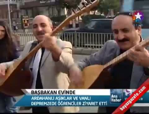 Ardahan'dan gelen iki ozan, Başbakan Erdoğan'la görüşemeyince geçmiş olsun dileklerini basın mensupları aracılığıyla saz çalarak ve türkü söyleyerek iletti.