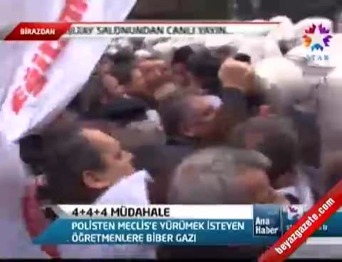 Ankara'da 12 yıllık zorunlu eğitim düzenlemesini protesto etmek için Meclis'e yürümek isteyen Eğitim-İş sendikası üyeleri, polisin biber gazlı müdahalesiyle engellendi.