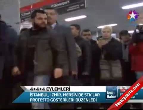 Eğitim-Sen üyesi yaklaşık 500 kişilik grup, TBMM 'de görüşülen yeni eğitim sistemini protesto etmek için Harbiye 'de toplandı. '4+4+4 ile çocuklarımızın geleceğinin karartılmasına izin vermeyeceğiz 'yazılı pankart açan grup, Cumhuriyet Caddesi üzerinden Taksim 'e doğru yürüyüşe geçti. Grup yürüyüş boyunca 'Gün gelecek devran dönecek AKP halka hesap verecek ', 'AKP yasanı al başına çal ', 'Parasız eğitim parasız sağlık ', 'Parasız bilimsel anadilde eğitim 'şeklinde slogan attı. Polisin geniş güvenlik önlemi aldığı protesto gösterinde Taksim 'e ulaşan grup adına basın açıklamasını Eğitim-Sen İstanbul 3. No 'lu Şube Başkanı Hüseyin Tosun okudu.
