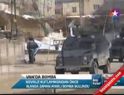 Diğer yandan Van'da, sözde nevruz kutlamasının yapılacağı alanın yakınında metal çivilerle güçlendirilmiş, zaman ayarlı 1 kilogram 854 gram A4 plastik patlayıcı ele geçirildi. Valilik olayla ilgili yaptığı açıklamada, 'İlimizde, Diyarbakır ve İstanbul'da yapılmaya çalışıldığı gibi PKK/KCK terör örgütünün talimatları doğrultusunda; örgüte müzahir şahıslar tarafından Nevruz kutlamaları adı altında molotoflu ve taşlı eylemler yapılacağı, bu kutlamalar esnasında ve sonrasında çeşitli provokatif olaylar yapılacağı istihbaratı alınması üzerine ilimiz giriş ve çıkışlarında, ayrıca şehir içerisinde İl Emniyet Müdürlüğümüz ekiplerince geniş çaplı önlemler alınmıştır. Bu önlemler çerçevesinde yasa dışı gurupların sözde nevruz kutlamasını yapacağı yer olan Seyit Fehim Arvasi Mahallesi'ndeki İtfaiye Meydanı ve çevresinde gerekli güvenlik tedbirleri alınmıştır. ' denildi. Açıklamada ayrıca şu bilgilere yer verildi: Saat 07.30 sıralarında bomba imha ve inceleme ekiplerimizin detektör köpekleri ile yapmış olduğu kontroller esnasında, Hidayet Caddesi girişi Behiye Şavur Cami karşısında bulunan dükkanların arka kısmındaki boş arazide, örgüt mensupları tarafından yerleştirildiği değerlendirilen siyah renkli poşete dedektör köpeklerinin tepki vermesi üzerine, gerekli çevre emniyeti alındıktan sonra bomba imha ekiplerince usulüne uygun yapılan müdahale neticesinde, el yapımı parça tesirli zaman ayarlı bomba etkisiz hale getirilmiştir. Müdahaleden sonra yapılan incelemede, şeffaf renkli bidon içerisine yerleştirilmiş, 1 kilo 850 kilogram A4 plastik patlayıcı madde ve içerisinde parça tesiri amacıyla konulmuş çok sayıda metal çivi, dijital saat, bir adet 9 voltluk pil, 1 adet elektrikli kapsül (fünye) elde edilmiştir. Konu ile ilgili tahkikata başlanmış olup, gelişmelerden ayrıca bilgi verilecektir. '