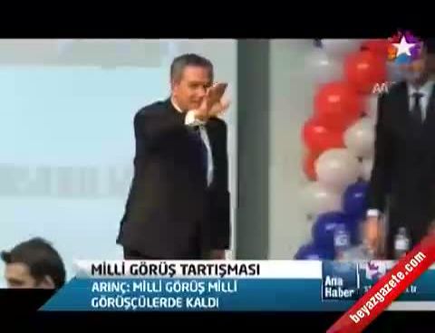 'Ak Parti'de Milli görüşçüyüz diyemeyiz 'diyen Arınç 'AK Parti yeni bir parti, Milli Görüş, Milli Görüşçülerde kaldı. Şimdi biz AK Parti'de 'Milli Görüşçüyüz' diyemeyiz. Böyle bir iddiamız yok. Onun partisi var.'' diye konuştu.