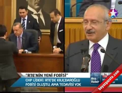 Kemal Kılıçdaroğlu, partisinin Meclis grup toplantısında yaptığı konuşmada, “Yeni bir fobi oluştu Recep Tayyip Erdoğan’da; Kemal Kılıçdaroğlu fobisi. Ben muhalefet partisi lideriyim. Normal olarak bir iktidarın yaptığı yolsuzlukları, ahlaksızlıkları, hırsızlıkları anlatmak zorundayım. Görevim bu zaten. Peki, Recep Tayyip Erdoğan’ın görevi ne? Muhalefet partisine, muhalefet etmek. Sabah kalkıyor Kılıçdaroğlu, akşam yatıyor Kılıçdaroğlu. Kendisini padişah zannediyor ya, rüya görüyor yine Kılıçdaroğlu, sabah hafakanlar basıyor, ne oldu diye. Recep Tayyip Erdoğan, Kemal Kılıçdaroğlu’nu sen yattığın her saniye rüyanda göreceksin. Bu fobinin tedavisi yok.” dedi.