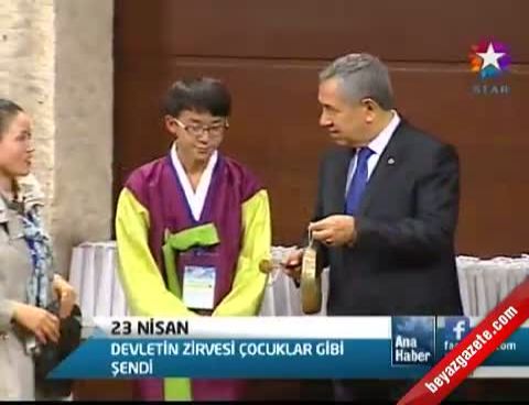 "Bu büyük bayramı da o zaman devletimizin kurucusu Mustafa Kemal Atatürk çocuklara armağan etmiş. Çünkü en değerli olarak onları görmüş. Ülkenin geleceği çocuklar olduğu için sizlere armağan etmiş ve çocuk bayramı olarak kutlamış. Şimdi bizim bütün arzumuz, ülkelerin cumhurbaşkanları, başbakanlar, bakanlar, yöneticileri hep ülkelerini çocuklar için hazırlamalı. Aslında sadece ülkelerimizi değil, dünyayı çocuklar için daha güzel yapmak. Dünyada savaşların olmadığı, çocukların ağlamadığı, üzülmediği, hepsinin annesi ile babası ile mutluluk içinde yaşadığı ülkeler ve dünya oluşturmak. Nasıl kardeşseniz, nasıl arkadaşsanız büyüyünce de ülkelerinizi yönetmeye başlayınca hep kardeş ve arkadaş olarak devam ederseniz, o zaman dünya da hep barış ve huzur içerisinde olur."