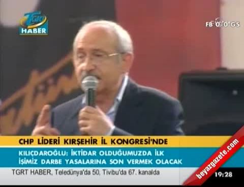 Aşıkpaşa Spor Salonu'nda düzenlen kongrede konuşan CHP lideri Kılıçdaroğlu, 'Yaşasın tam bağımsız Türkiye', 'İnadına sol, inadına CHP' sloganları ile kürsüye geldi. Kılıçdaroglu, “Yazar, aydınların konuşamadığı 21'inci yüzyılda, 'Silivri Toplama Kampı' oluşturuldu. CHP iktidar olduğunda önce demokrasi ve özgürlüğü getirecek bu ülkeye. Demokrasi ve özgürlüğü getirmenin yolunu bulup yargı bağımsızlığını sağlayacağız. Yargıç, vicdanı ile karar verecek. Yargıcın verdiği karar, halkın vicdanında kabul görecek. 'Poşu taktı' diye bir gence 11 yıl ceza verirseniz, orada yargı yoktur. İşten atılan, korkudan yazamayan gazeteciler var. Bu düzene son vereceğiz” dedi.
