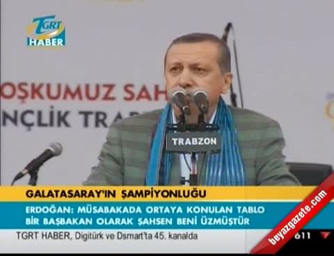 ''Ben bugün böyle bir şeyi söylemek istemezdim, ama söylemek zorundayım. Spor denince ağırlıklı Türkiye'de futbol akla geliyor. Ve maalesef dün akşam, işte bir final maçında Galatasaray-Fenerbahçe arasındaki müsabakada ortaya konulan tablo bir Başbakan olarak şahsen beni üzmüştür. Ortada bir netice var ve futbolun üç neticesi var. Galibiyet, beraberlik ve mağlubiyet... Bu üç neticeye de katlanmak durumundasın. Eğer bu üç neticeye katlanamıyorsan bu işi yapma. Fair Play denilen olay budur.
