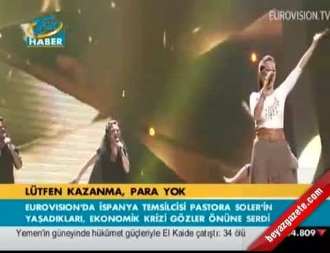 Eurovision Şarkı Yarışması'nda İspanya'yı temsil eden Pastora Soler, ülkesinin yaşadığı ekonomik krizden dolayı yarışmayı kazanmaması yönünde kendisine telkinde bulunulduğunu söyledi.