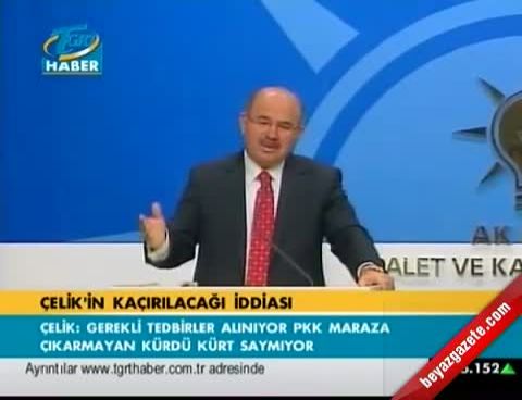 Çelik’e ilk olarak PKK’nın AK Parti vekillerini kaçıracağı yönündeki planlar soruldu. Bu bilginin kendisine de geldiğini ve tedbirlerin alınmakta olduğunu vurgulayan Hüseyin Çelik, şöyle devam etti: “PKK terör örgütü ve uzantıları, maraza çıkarmayan Kürdü Kürt saymıyor, Kürtçü olmayan Kürdü Kürt saymıyor. Ve diyor ki Kürtlere ‘ya benim gibi Kürt olacaksın ya da sana hayat hakkı tanımıyorum’ Bizim devletimiz, milletimiz doğusuyla, batısıyla her türlü şer cephesine, terör örgütüne karşı halkımızı korumalıdır ama bence bugün en önemli görevlerimizden birisi Kürtleri PKK’ya karşı korumaktır. Kemal Burkay yurt dışından geldi, PKK’nın hoşuna gitmeyecek laflar etti. Kemal Burkay tehdit edildi. Orhan Miroğlu hoşlarına gitmeyen bir şey söyledi, tehdide maruz kaldı. Leyla Zana hoşlarına gitmeyecek laflar etti, yıllarca onların içinde olmasına rağmen, hemen ağzına biber sürdüler. Bizim tavırlarımızdan her türlü ırkçı rahatsız olabilir. Bizim konuşmalarımızdan icraatlarımızdan hükümet olarak, parti olarak uçlardaki insanlar hoşlanmıyor. Türkçü ırkçılar da hoşlanmıyor Kürtçü ırkçılar da hoşlanmıyor. Bu, doğru yolda olduğumuzu gösteriyor.”