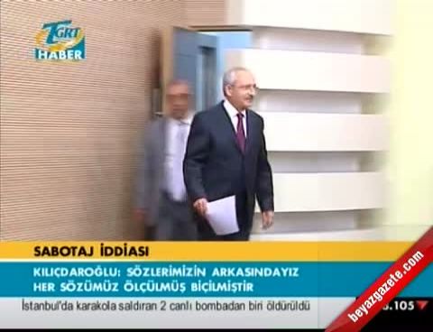 CHP Genel Başkanı Kemal Kılıçdaroğlu, Afyonkarahisar'daki patlamayla ilgili, "Bana gelen bilgiler sabotaj olduğu yönünde. Hatta bir bilgi yüzde 99 değil 99.5 "sabotaj"dır yönünde" diye konuştu.