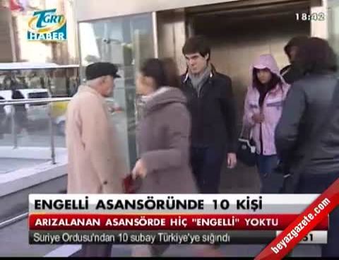 Alınan bilgiye göre, Beyoğlu Taksim Meydanı, Taksim Metrosu engelli asansörüne binen 10 kişi, arıza nedeniyle asansörde mahsur kaldı. Bir süre asansörün kapısının açılmasını bekleyen vatandaşlar daha sonra kapı açılmayınca paniğe kapılarak itfaiyeyi ve polisi aradı. Asansörde şaşkın bakışlar içinde çevresine bakan şahıslar, asansörün yavaş yavaş aşağı inmesi nedeniyle korku dolu gözlerle yukarı bakarak yeniden metroya indi. Olay yerine gelen polis ve itfaiye ekipleri mahsur kalan şahısları asansörden kurtardı. Engelliler için yapılan asansörleri kullanan vatandaşlar, mensuplarının sorularını yüzlerini gizleyerek yanıtsız bırakırken, bazı vatandaşla engelli olduklarını iddia ederek asansöre bindi .