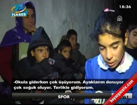 Eksi 10 derecede terlikle okul yolunda